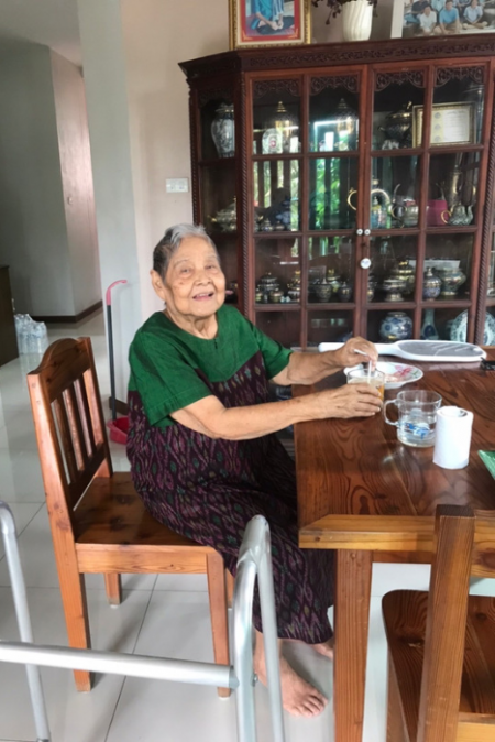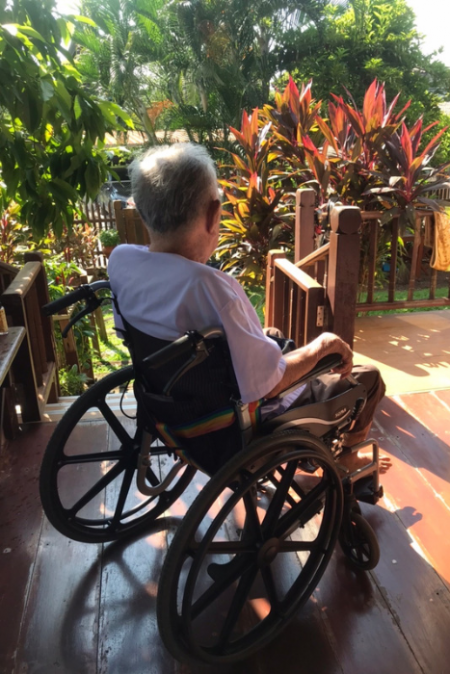 “คุณแม่อยู่ศูนย์มาก่อน 1 ปีก่อนกลับมาอยู่บ้าน ลูกๆๆให้อยู่ศูนย์เพราะจริงๆๆแล้วกลัว เลยอยากให้อยู่ใกล้หมอ และลูกๆๆทำไรยังไม่เป็น อยู่ศูนย์จนพ่อที่ให้ไปเฝ้าเริ่มอาการไม่ค่อยดีเหมือนกัน จนตัดสินใจกลับบ้านทั้งที่ยังกลัวเหมือนเดิม ครั้งแรกที่เจอก็ให้คำแนะนำการจัดเตียง การเคลื่อนย้ายตัวต่าง จนทำให้ลูกๆๆ ไม่ต้องกลัวอีกต่อไป แรกๆๆฝึก แม่ก็งอแง ดื้อมาก นักกายภาพ ก็ใจเย็น และให้เวลา จนอาการดีขึ้นเรื่อย ๆๆ”