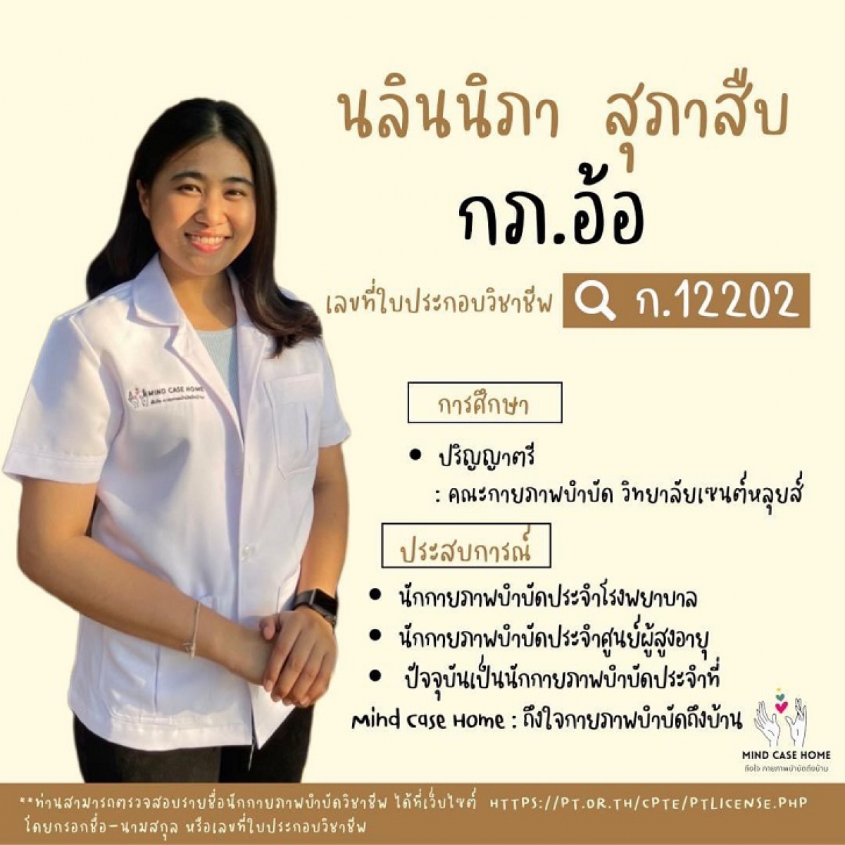 ทีมนักกายภาพบำบัดที่ให้บริการถึงบ้านโดยนักกายภาพบำบัดวิชาชีพที่มีประสบการณ์ รับรองจากสภากายภาพบำบัด