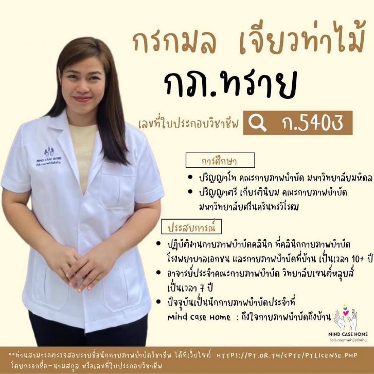 **ท่านสามารถตรวจสอบรายชื่อนักกายภาพบำบัดวิชาชีพ ได้ที่เว็บไซต์